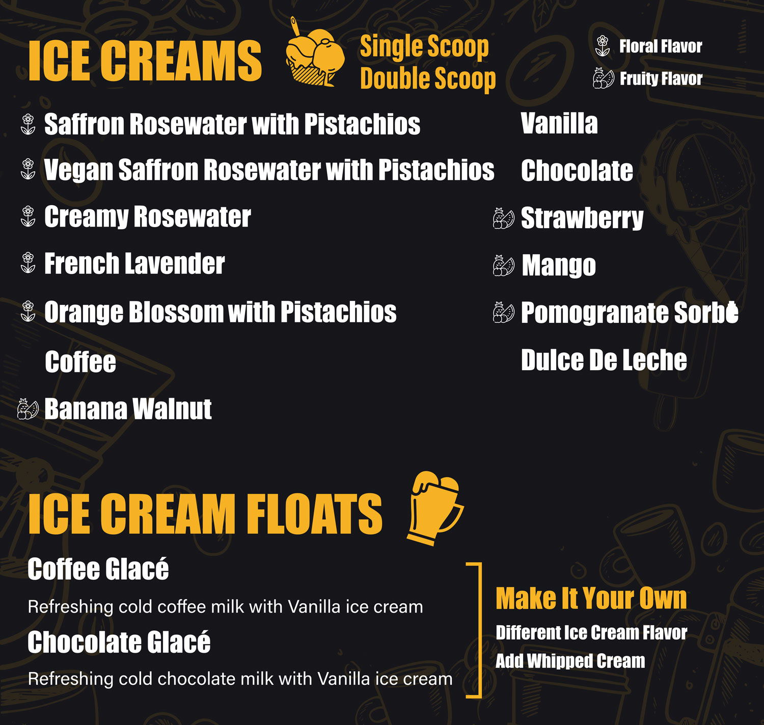 Exotic Ice Cream, Gourmet Coffee, Pastry & Variety of Tea